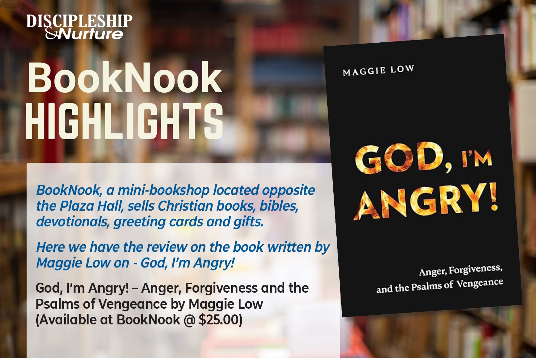 God, I’m Angry! – Anger, Forgiveness and the Psalms of Vengeance by Maggie Low (Available at BookNook @ $25.00)