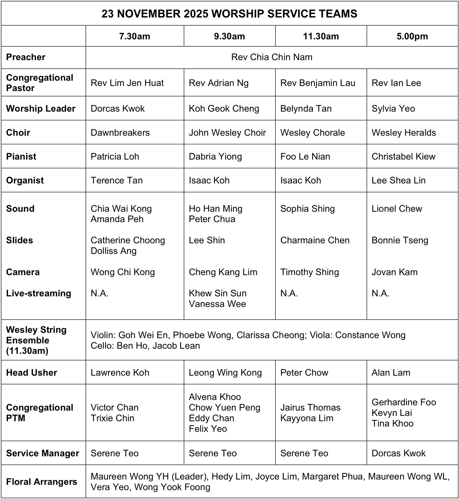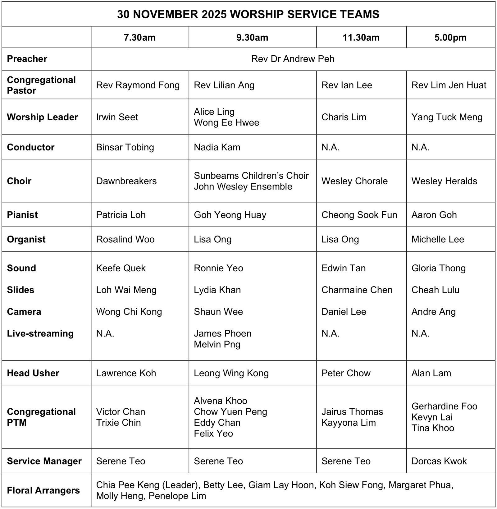 Wesley Sanctuary 7.30am | 9.30am (Live-streamed) | 11.30am | 5.00pm