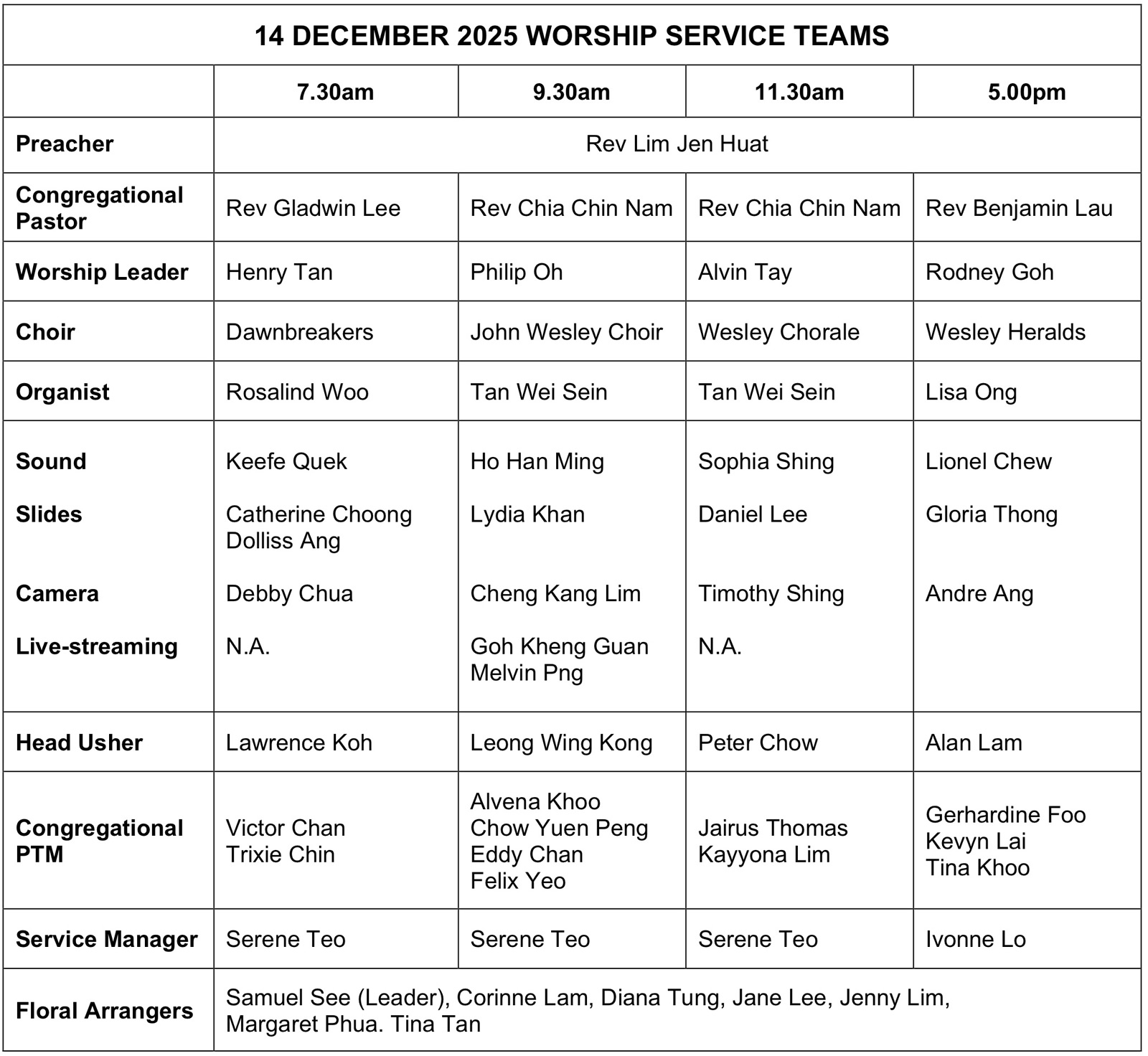 Wesley Sanctuary 7.30am | 9.30am (Live-streamed) | 11.30am | 5.00pm